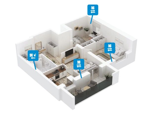 Nasze urządzenia mogą działać samodzielnie lub stanowić zsynchronizowany skuteczny system wentylacji mechanicznej z odzyskiem ciepła dla całego obiektu.